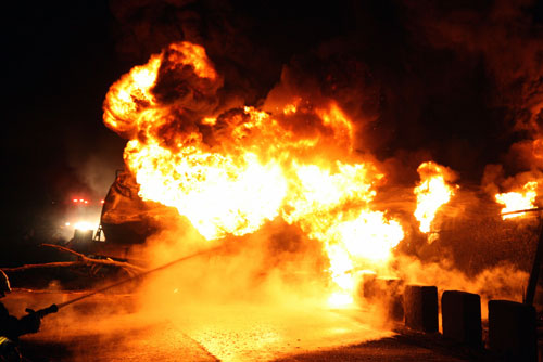 台一化学原料车与轿车相撞并爆炸 1人致死(图) (2)