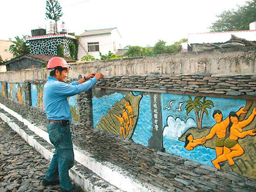 图:台少数民族石板堆砌“故事墙”传承文化