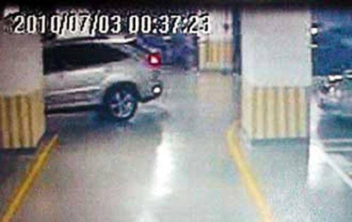 ◎人文首玺停车场监视录像画面显示,陈致中7/2 23:04开凌志休旅车离开停车场,7/3 00:37返回,与召妓男召妓时间相符
