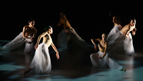 台湾云门舞集以书法为素材的作品“屋漏痕”,18日在剧院举行彩排记者会,舞者流畅的肢体动作,刻画出令人惊叹的舞台张力。 图片来源:“中央社”