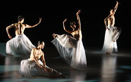 台湾云门舞集以书法为素材的作品“屋漏痕”,18日在剧院举行彩排记者会,舞者流畅的肢体动作,刻画出令人惊叹的舞台张力。 图片来源:“中央社”