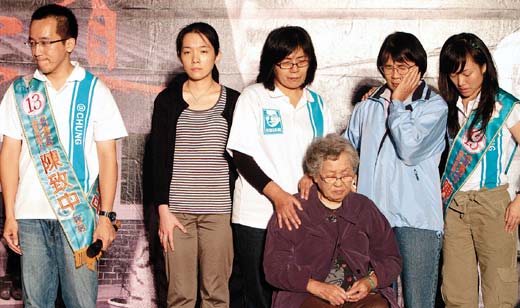 扁妈还向台下群众保证,“致中如果当选,一定好好服务,我这么老了,唯一依靠就只有致中这个孙子,他如果落选,我没办法活下去啊!”