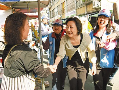 而在选情激烈的台北市,国民党候选人郝龙斌的太太高阆仙就与丈夫兵分两路,高阆仙在“立法院长”王金平陪同下到街市拉票,不过似乎被王金平抢尽风头。
