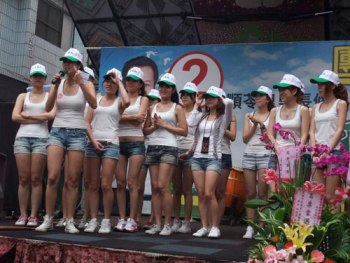 国民党方面,台中市长候选人胡志强竞选总部成立志工会,来自台北的美女双胞胎正妹率先加入。高雄市长参选人黄昭顺则出动“正妹”女儿现身力挺,现场多位女性“立委”现身力挺。
