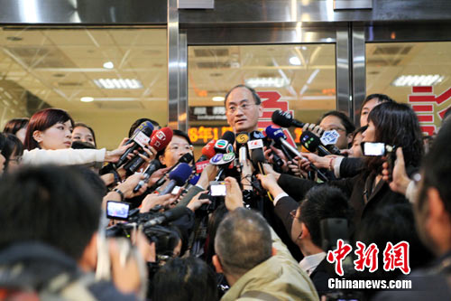 组图:连战长子连胜文遭枪击 连战办公室主任丁远超对媒体发言