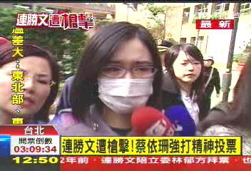 中新网11月27日电 据台湾TVBS报道,连胜文26日晚间辅选站台遭到枪击,太太蔡依珊在第一时间赶往医院了解状况,每每医师报告进度,蔡依珊都是以泪洗面。