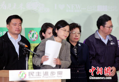 11月27日晚,民进党主席蔡英文在台北中央党部对媒体表示,台湾“五都”市长选举民进党获得南部2席,虽然总得票数较前增长,但她个人挑战新北市长没有成功,该党将再接受社会检验。