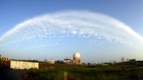 图:高雄机场上空现半弧云彩 酷似水柱蔚为奇观