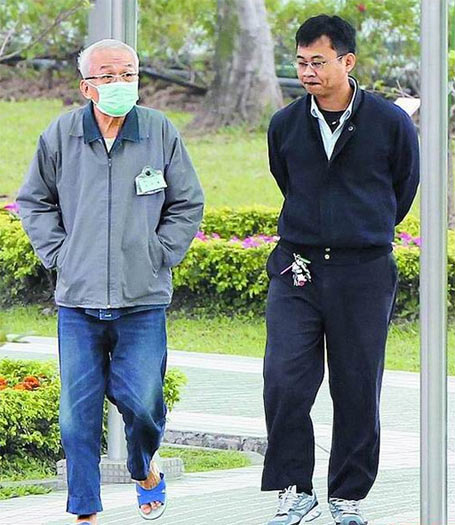 台湾“中华开发”前董事长刘泰英(左)3日也有特别接见,但不同于扁,刘只有一名管理员戒护。图片来源:台湾《苹果日报》