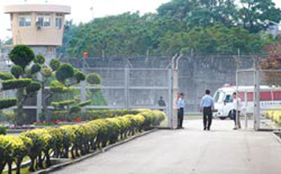培德医院在台中监狱里面,吴淑珍必须搭救护车从左边瞭望塔旁的铁门直接开进来,再右转铁丝网围墙大门,到达监狱里面下车,再经过一个岗哨,二道铁门,才到达培德医院。图片来源:台湾《中国时报》