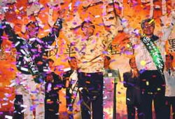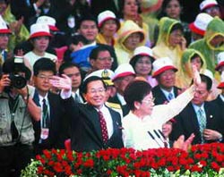 然后二○○四年“大选”来了,国民党早早进行“连宋合”的团结,看来似乎又要重演一九九八年台北市长选举的戏码。居于劣势,陈水扁使出全力,在投票前夕神奇地发生了“两颗子弹”的事件,让他在“大选”中以两万票的差距险胜。除了“奇迹”,还能如何称呼这样的转折变化呢?