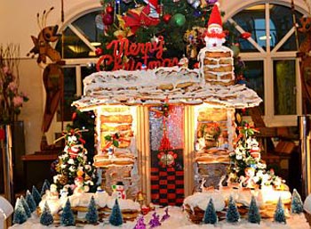 欢庆即将来临的圣诞节,礁溪温泉饭店业者创意独具,请主厨模拟西洋姜饼屋,以葱油饼作为姜饼屋的材料,打造出一座色香味俱全的葱油饼屋。而三星葱是宜兰著名的农特产品,加入三星葱花的葱油饼香气四溢,令许多民众垂涎。