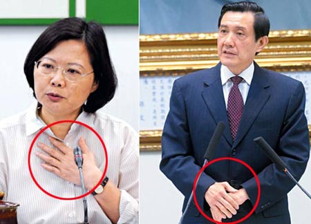 乔纳瓦罗发现,马英九紧张时有“揉手指”的惯性动作,可能是自我放松;蔡英文说话时则会直视对方,也会不时摸着胸口,表达出“真诚的感觉”。