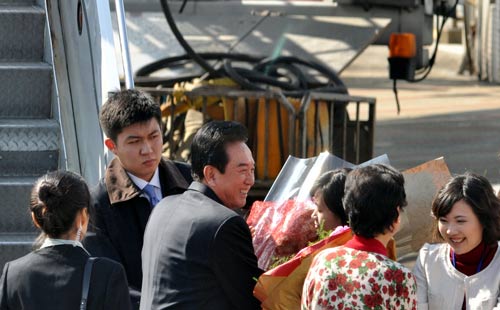 组图:海协会长陈云林率团抵达桃园机场(4)