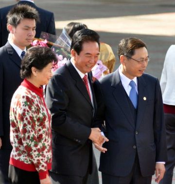 中新网台北12月20日电 海协会会长陈云林今天中午12点20分左右抵达台北圆山大饭店,受到台湾海基会董事长江丙坤等人热烈欢迎。