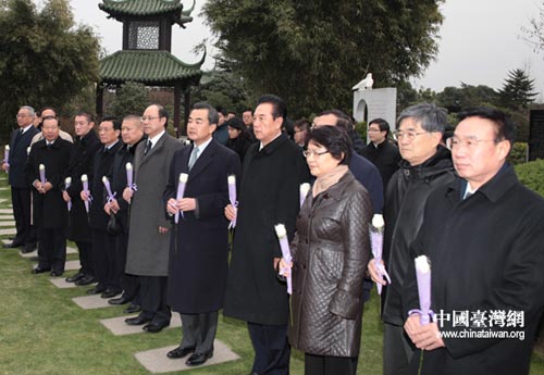 今天,是海协会首任会长汪道涵先生逝世五周年纪念日。我和陈云林会长以及中共中央台办、海协会的同事们专程从北京来到这里,和上海的同事以及汪老的家属一起,为汪老举行一个既简短又庄重的祭奠活动。