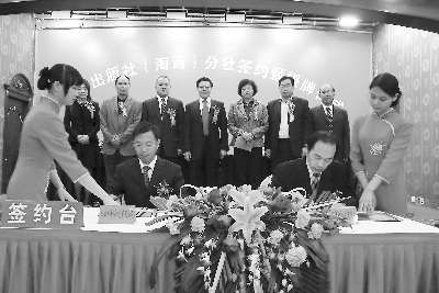 23日,由国台办海峡两岸出版交流中心和泉州闽南书局合作的九州出版社海西分社,在泉州签约并举行授牌仪式,这标志着国台办与泉州在拓展涉台出版事业、服务两岸同胞的合作上迈出实质性步伐。(记者 刘益清 通讯员 吴越 摄)