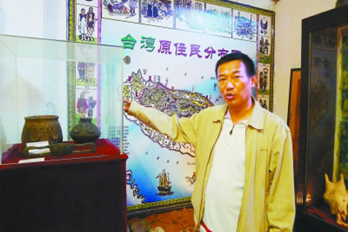 在鼓浪屿晃岩路上,有一座“百年台湾”馆。近万件的文物让游客仿佛进入台湾历史的时空隧道。这家博物馆的主人就是来自台湾的洪明章(如图)。创办之初,连他自己也没想到,“百年台湾”竟然成为大陆第一座台湾人创办的私人博物馆。