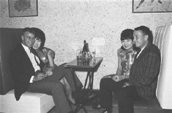 仔细看这张让台湾艳名广传全世界的照片,会发现这个当年才20岁的美国大兵,从随时都会死伤的战场上来到台湾,享受两位年轻女子的共浴服务时,他的眼神倒也没有什么暧昧淫秽,反而就像是一个2岁的小男孩,洗澡时让妈妈在旁边替他冲水时一样。