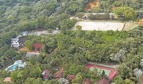 李华得名下的“华得山装”空照图,有露天泳池、别墅木屋群、网球场、马场。图片来源:台湾《苹果日报》