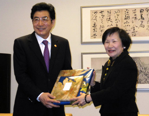 郭金龙率领的访问团16日晚抵台,17日上午参访台北故宫。台北故宫院长周功鑫表示,台北故宫从2009年开始和北京故宫密切合作,陆续推出雍正、康熙展,2013年将推出乾隆展;她也不忘推销正在大陆巡回演出的富春山居图3D多媒体艺术展。