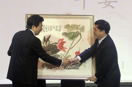组图:郝龙斌宴请北京参访团 郭金龙获赠双龙琉璃(2)