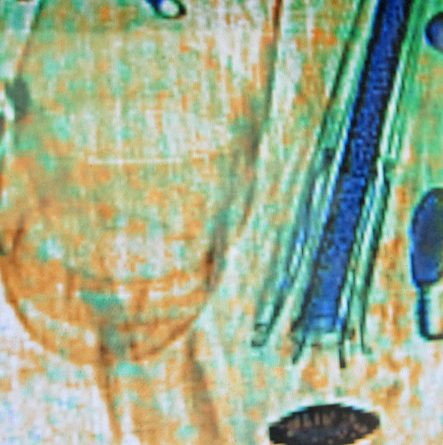 金门警方也会同工程师调阅码头“小三通”出境行李X光检查仪器录像带,以3D解析,在一只4日下午到厦门的客轮旅客背包发现勋章的轮廓。