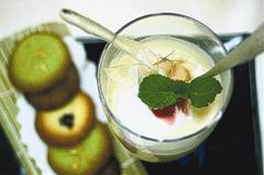 据北美《世界日报》报道,台弘光科技大学餐管系学生黄柏达、沈怡婷在比赛中将泡面煮熟、揉烂后,再加入牛奶、香草,急速冷冻成粘稠的牛奶糊,切入水果丁,完成“泡面奶昔”。他们还将泡面糊打入蛋白,再烤成手工饼干,作品端出后,亦引起惊呼。