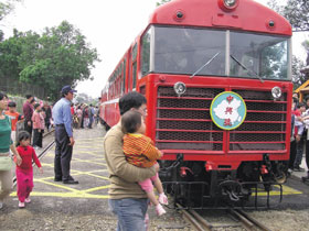 当“中兴号”柴油特快车一出场,鲜红色车身立即吸引众人目光,成为小朋友写生题材。据悉,“中兴号”柴油特快车于1963年引入,曾创下嘉义到阿里山只要2小时55分的最快纪录,不少游客都曾坐过,直到阿里山号冷气车启用,1990年停驶。