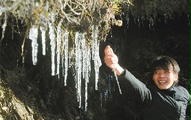 据台湾“中广新闻网”报道,合欢山庄工作人员表示,什么时候下雪并不清楚,早上起来,就看到外面的树头及道路两旁披上白色的薄衫,天空还下着细细的雨,温度正好是零度。而此时在合欢山庄的游客并不多,不过,他们很兴奋遇上合欢山入冬以来第一场雪。