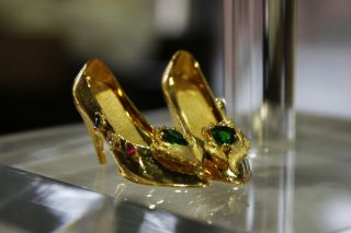 据台湾“中广新闻网”报道,台湾传统艺术中心即日起到3月举办“2007年台湾金工大展”。全心投入金雕艺术创作、修习黄金首饰打造的杨璨豪,精心打造的迷你黄金高跟鞋,金光闪闪,贵气逼人,精致的手工令人赞叹。