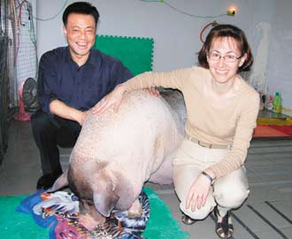 中新网2月7日电 台湾云林科技大学应用外语系副教授郑家捷的宠物猪“露西”,三年前买回家时,模样迷你只有2公斤,如今变成200公斤的大母猪,走起路来气喘吁吁,目前正在减肥中。