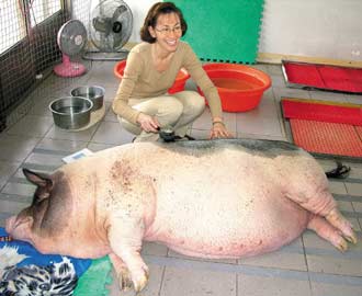 “当时宠物店老板说,迷你猪养不大,结果露西每年平均增胖60多公斤,身材走样。”不过,露西聪明又会撒娇,仍是郑家的宝贝。