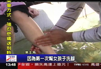 在头城担任警察的男主角,为了让已经交往2年的女友答应他的求婚,今天(9日)不惜在众人面前,亲自在水池里用香皂帮女友洗脚。记者:“感觉怎么样?”男主角:“有幸福的感觉,因为第一次帮女孩子洗脚。”女主角:“很特别啊。”记者:“怎么说?”女主角:“就是从来没有被他洗过脚。”