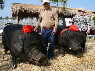 中新网2月15日电 据台湾《联合报》报道,屏东热带农业博览会中有对栩栩如生的“神猪”,不少参观民众笑得合不拢嘴,因为实在太像了,还有人当成真猪,趋前一看才知道是艺术作品,随即拍照留念。明年刚好是猪年,热博园区内的这对神猪,一时也成了热门景点。