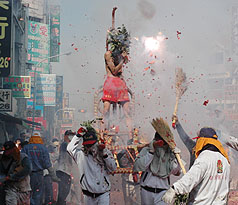 中新网3月4日电 闹元宵的重头戏——台东炮炸寒单爷今天(4日)下午登场,肉身寒单爷置身在宛如枪林弹雨的鞭炮中,越炸越旺,场面震撼,今年总共有13场次,压轴是3月7日晚上在海滨公园的大草原。
