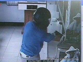 据台湾东森新闻报道,新化农会信用部的监视画面中,可以看到这名抢匪头戴深色安全帽及口罩,穿着牛仔外套,却是光着脚走进来,忙着工作的行员没有听到声音,并没有抬起头来,这抢匪走到柜台前,接下来就亮枪要抢钱,面对枪口的行员并不觉得害怕,反而觉得这个枪匪的声音好熟悉,好像是当天上午来领过1万元的客户。