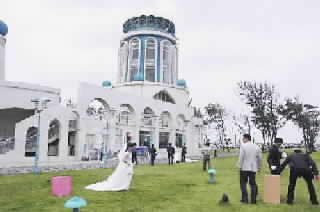 据台湾《中华日报》报道,17公里海岸风景区旅游服务中心在主办单位的精心设计下,把蓝白相间的旅游服务中心建筑物布置的十分浪漫,徐徐微风吹来,粉色系列的布幔及五彩缤纷的汽球,整个现场显得喜气洋洋又充满浪漫气氛,真是个结婚的好日子 !