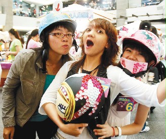 中新网7月16日电 台湾台中市一购物中心举办安全帽创意竞赛,提供参赛者一顶纯白安全帽。经一个月的构思创作,三十名参赛者15日戴着“变身”后的安全帽走秀,充满乐趣。