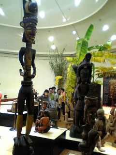 少数民族木雕艺师作品大多具有象征意义的原始图腾,如人像、蛇纹、太阳纹等符码为展品主要题材,而独特的刀法更展露出民族的艺术天份,刻划出富有族群的生命作品,其中有多座巨幅雕刻,更是顺应树木的形势雕凿而成,堪称鬼斧神工。