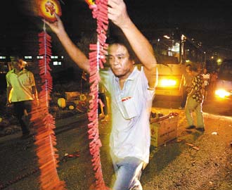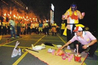 中新网9月24日电 一场驱鬼的路祭让彰化县花坛乡与紧邻的秀水乡陷入剑拔弩张气氛中。秀水乡民担心好兄弟被对方逼赶窜逃到乡境内,设路障严禁对方越界,还布置炮阵、插青竹符对阵,结果办路祭的仑雅村民改变路线,仪式23日晚顺利结束,“阴阳相安”。