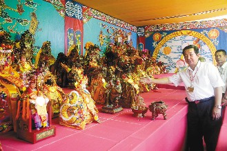 中新网9月30日电 为庆祝5尊湄洲妈祖到岛内宜兰南方澳南天宫安座20周年。南天宫庙方29日邀请各地分灵妈祖大团圆。共有来自纽约、加拿大、花莲、金门、澎湖等地的超过500尊妈祖“回娘家”,相当热闹。