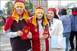 中新网2月15日电 昨天是情人节,伍重瀚、蔡悦晨这对台湾情侣选择站上情人轿扮演寒单爷(台东地区汉人的民间信仰中相当独特的一支)接受炮轰,成为史上首对情侣档寒单爷。