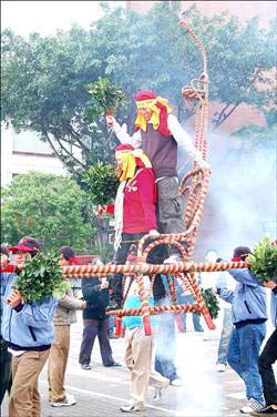 台东炸寒单,头一遭出现情侣档寒单爷,热闹中带有趣味。