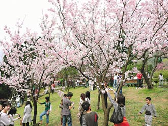 台北市公园处表示,这几天游客上山非常踊跃,上周五游客就达到109万人次,杜鹃、茶花、桃花、叶牡丹、华八仙已全数盛开,加上整片盛开的樱花,非常漂亮。