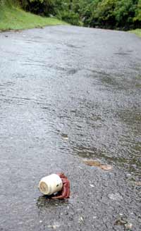 这些血肉模糊的小动物以蟹类最多,其次是蛙类,让人惋惜的是有些尸体是相当珍贵的兰屿光泽蜗牛,它可是兰屿才有的宝贝;有些则是兰屿虎皮蛙,这也是兰屿特有种的保育类动物,以及有名的椰子蟹。