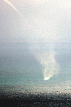 中新网9月26日电 据台湾《联合报》报道,屏东县恒春镇垦丁外海25日清晨,出现罕见的“水龙卷”,持续五分钟,不少到社顶自然公园观赏赤腹鹰南迁的鸟友,意外观赏到奇景。