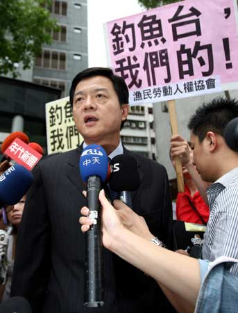 中新网6月12日电 日本海上保安厅船只在钓鱼岛海域撞沉台湾渔船事件延烧,台北县长周锡玮12日上午到“日本交流协会”抗议,要求放人赔偿损失。
