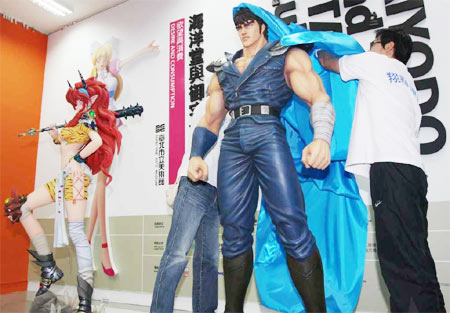 中新网11月14日电 据台湾《中国时报》报道,台北市立美术馆将于十六日举办“欲望与消费——海洋堂与御宅族文化展”,预计将展出三千件大中小型动漫模型。图为与真人一样大的模型——北斗神拳的帅气男主角“拳四郎”。