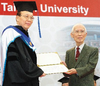 同时获颁名誉博士的小说作家王文兴则有感而发地说,台湾不能抛弃中国古文化,要放开心胸接受。出生于福建的王文兴六十二年前和父母来到台湾。他毕业于台大外文系,曾与同班同学白先勇、欧阳子、陈若曦等人创办现代文学杂志。